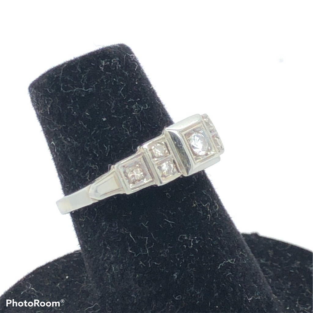 - Smaller Round Diamonds Set in Square Settings, Typical of 1920's to 1940's Style